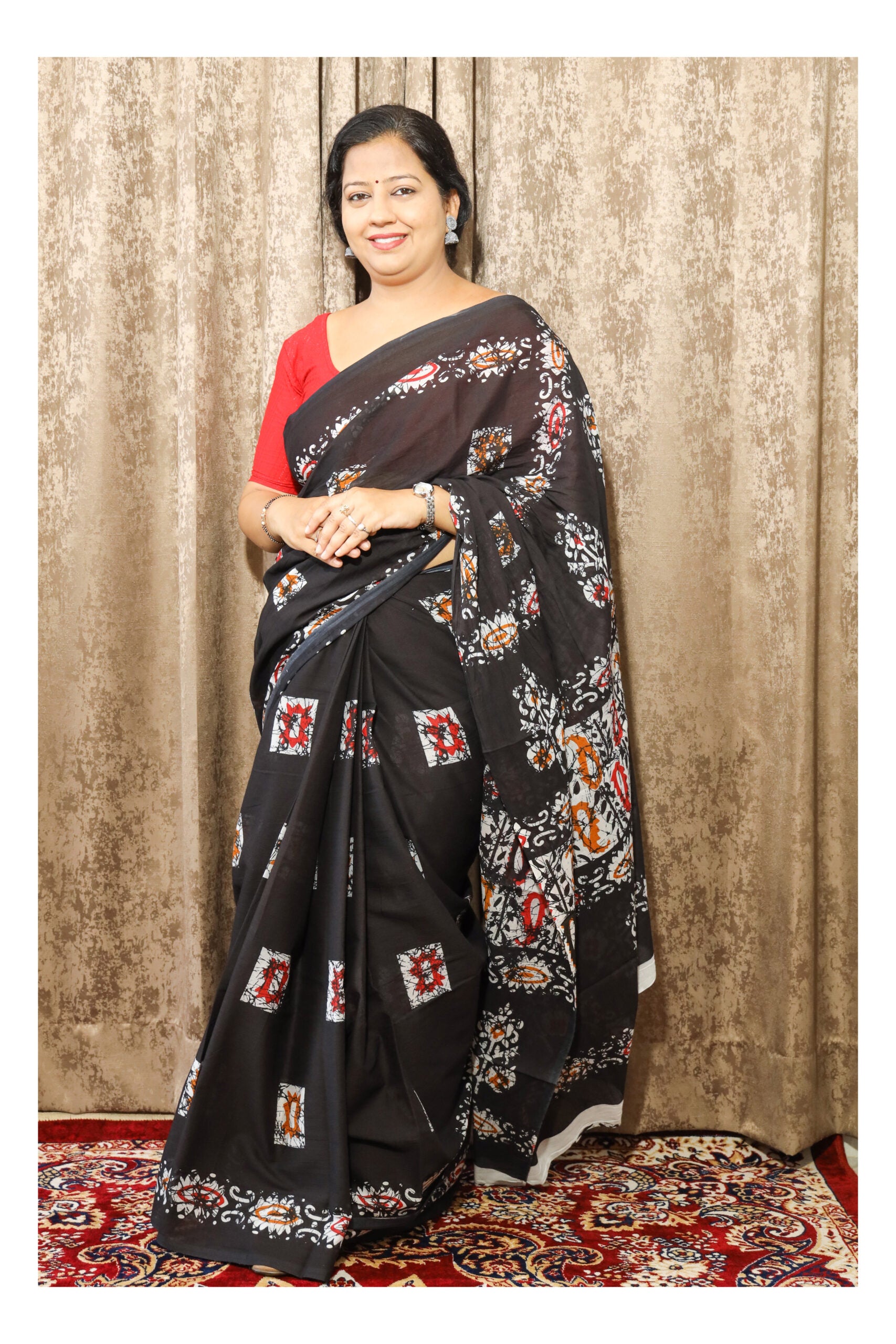 Upgrade your saree collection with our Batik Print Black Mulmul Cotton Saree. Made with soft, lightweight cotton fabric, this saree features beautiful batik print that adds a unique touch to any outfit. Perfect for any occasion, this saree will make you feel comfortable and stylish.