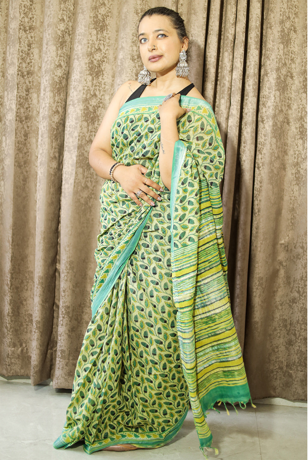 Experience luxury and elegance with our Green Cotton Linen Saree. Made from the finest quality cotton and linen blend, this saree boasts a vibrant green color that will make you stand out in any occasion. Perfect for those who appreciate sophisticated and exclusive fashion.