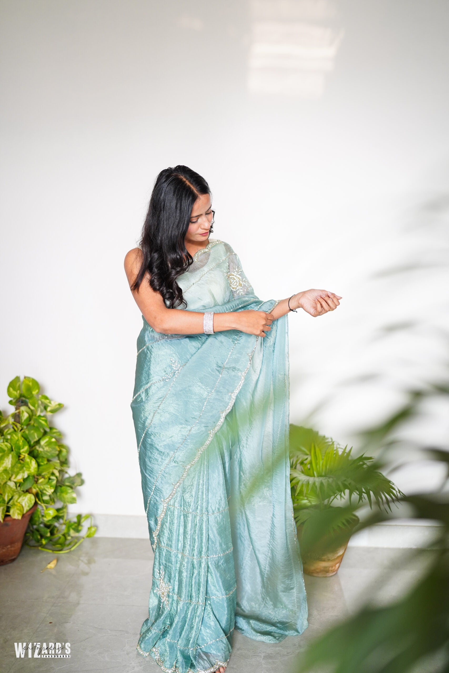 Add a touch of elegance and charm to your wardrobe with our Sea Blue Tissue Saree. The metallic shine adds a subtle sheen to the saree, making it perfect for any formal event or special occasion. Elevate your style and leave a lasting impression with this stunning piece.